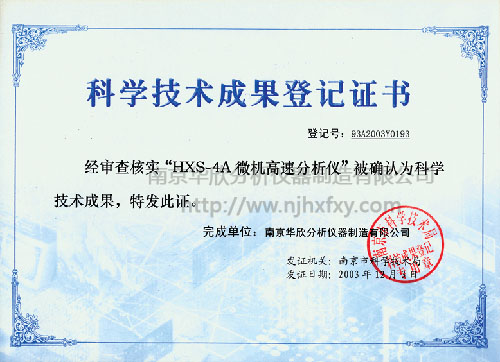 微機高速分析儀科技成果登記證書